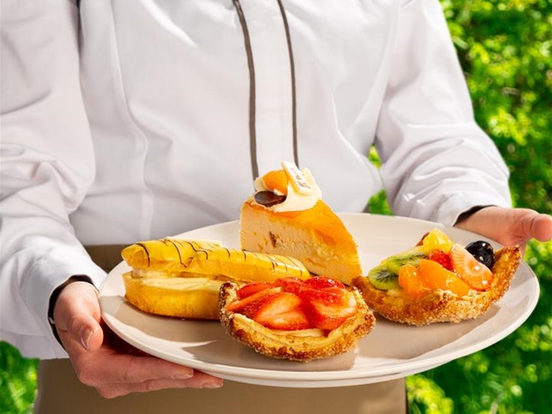 De bakker maakt een mix van verschillende soorten gebakjes.